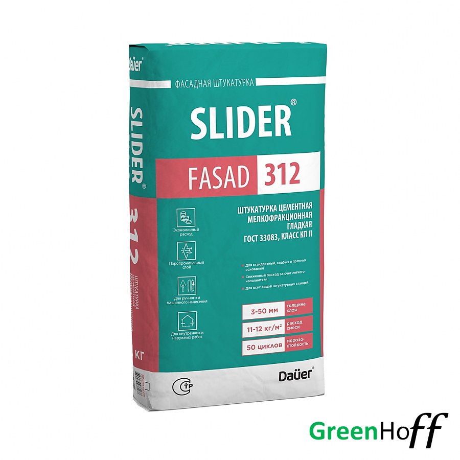 Штукатурка цементная мелкофракционная гладкая SLIDER® FASAD 312, DAUER